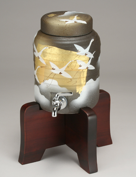 | 金箔ツル 焼酎サーバー Sサイズ 容量1,000cc 専用木製台付 ◇径13×高さ15.5cm |